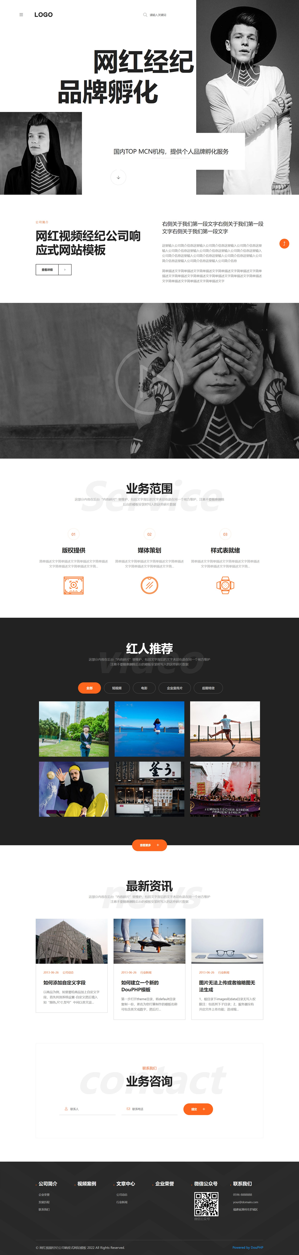 當前位置:首頁>模板>IT、軟件、互聯網>網紅視頻經紀公司響應式網站模板