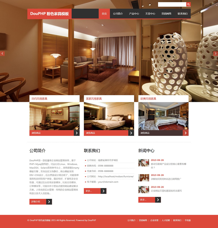 簡單介紹:模板是搭配DouPHP企業建站系統使用的,需要先安裝DouPHP后再安裝此模板,模板基于DIV+CSS,兼容IE7+、Firefox、Chrome、360瀏覽器等主流瀏覽器,響應式設計,可以同時適配PC、手機端、平板端。