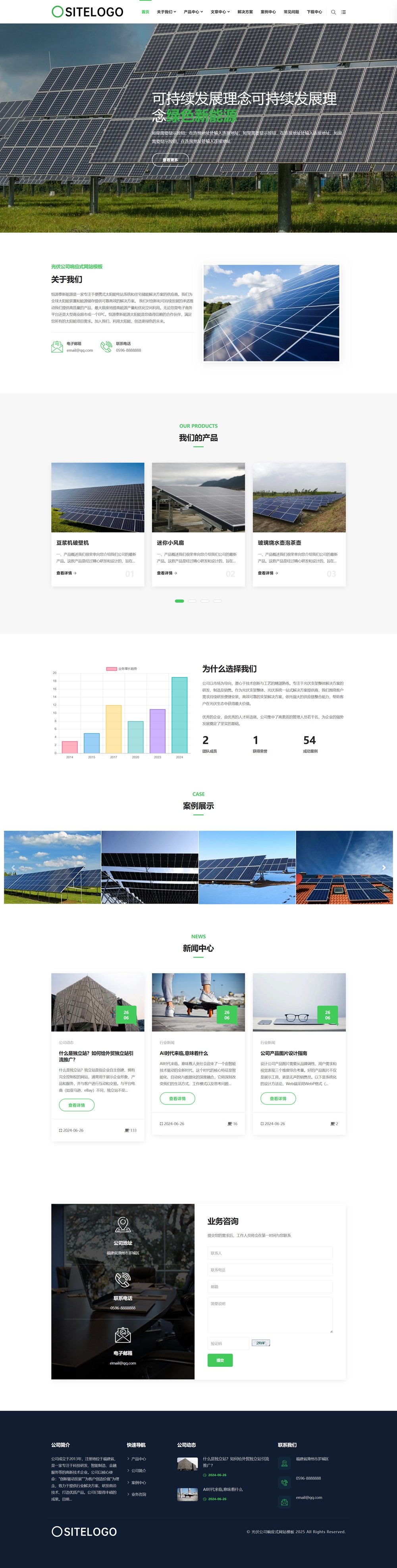 簡單介紹:新能源公司響應式網站模板,專為光伏支架、太陽能面板等新能源企業打造的高效數字化展示平臺,生態綠主題配色,自動適配PC/平板/手機端,確保電站業主、安裝商等客戶流暢瀏覽,新聞中心支持政策解讀/技術白皮書發布,建立行業權威,適用場景:? 光伏組件制造商 ? 支架系統供應商 ? 太陽能工程承包商 ? 新能源解決方案提供商